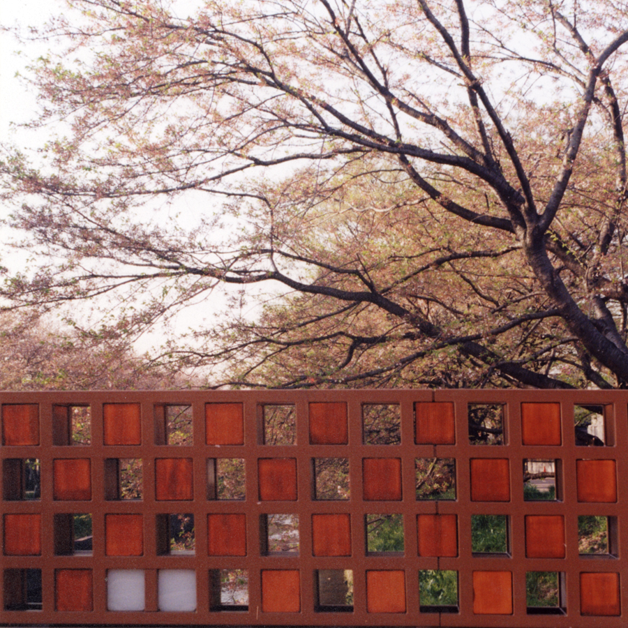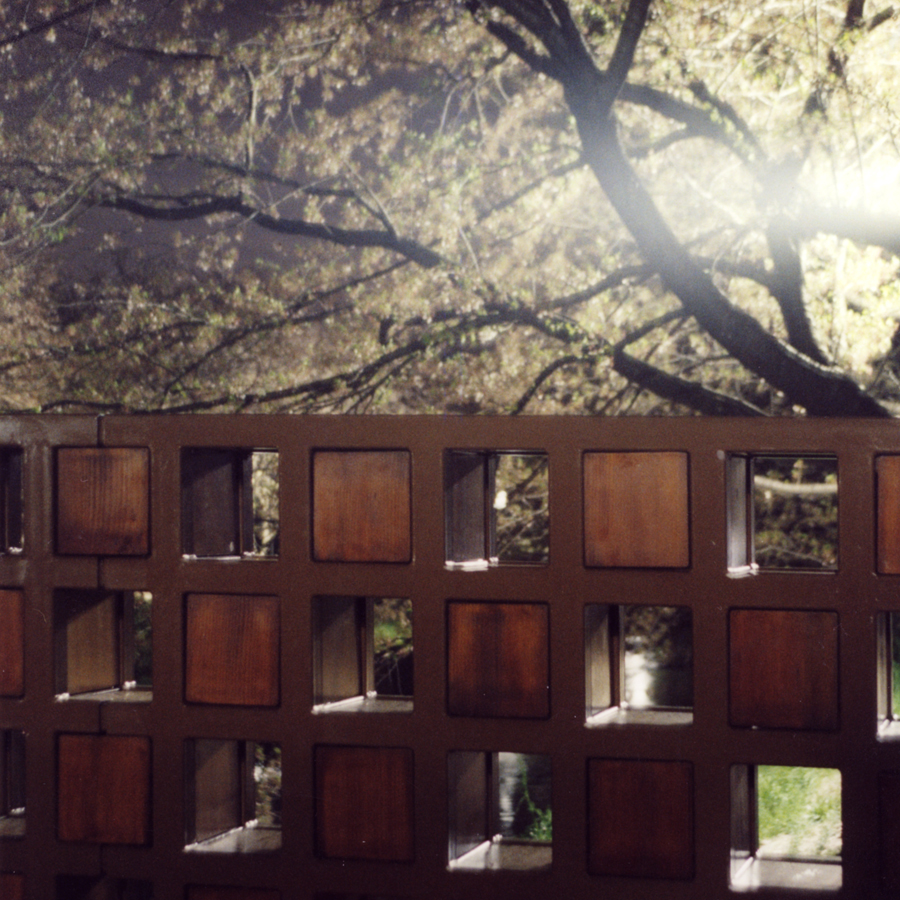 陽に照らされた桜の木を通して足元にひろがる木々の葉影。ランダムにひろがる自然のとても穏やかで魅力的な光景を切りとりモチーフにした。桜と共にある四季折々の風景をここを訪れるひとが楽しめる場所となっている。